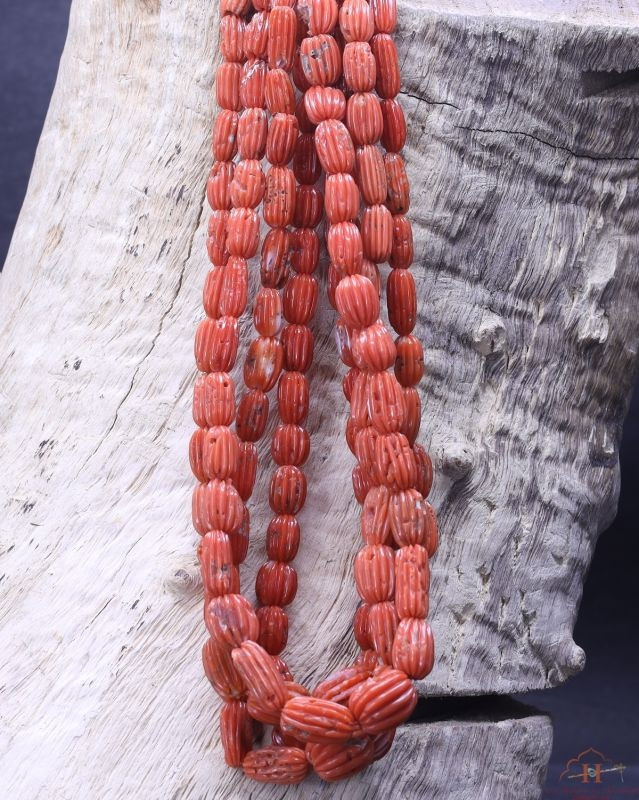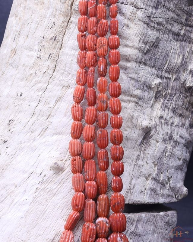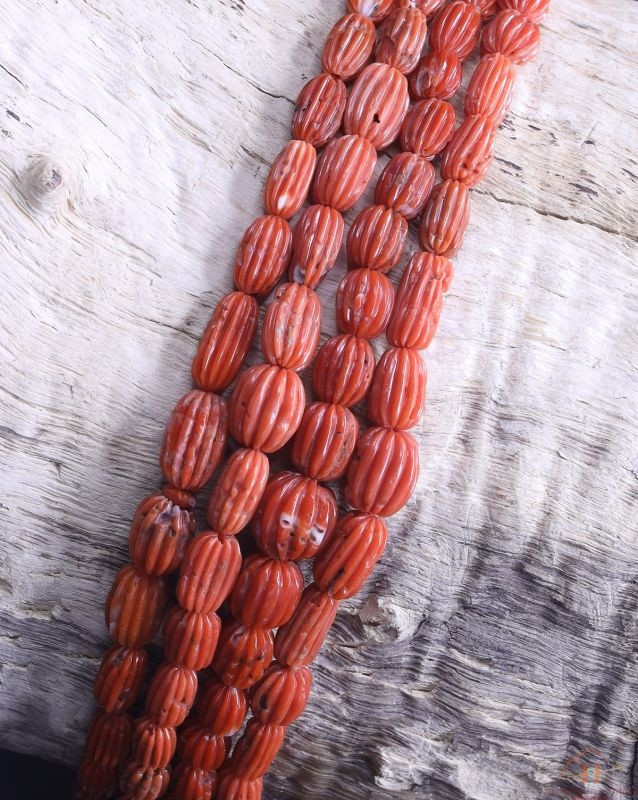Aka Coral Oval Carved Beads