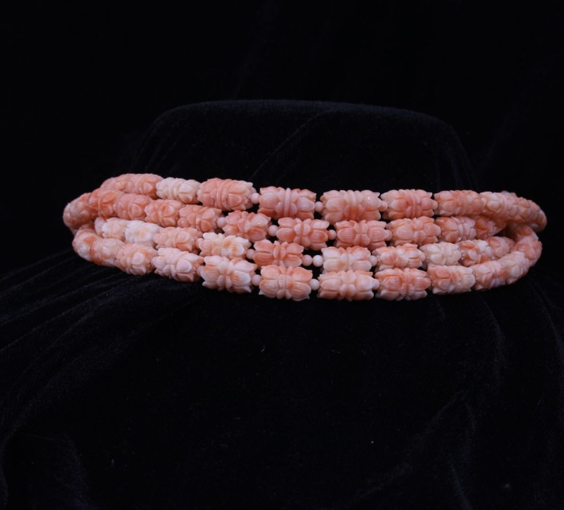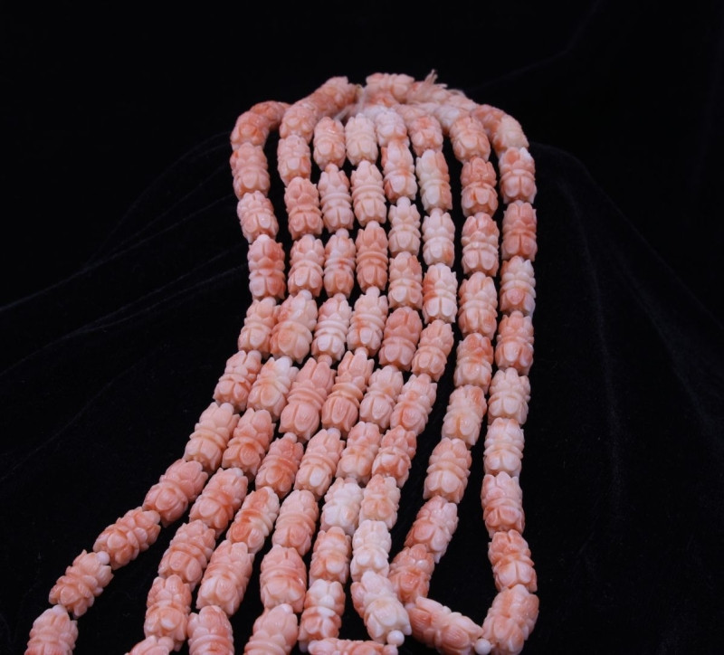 Pink Coral Lotus Carved Drum Shape